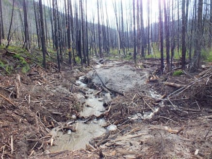 Among the photos Pat sent last night were these two taken in the headwaters of Woods Creek on the West Fork District, Bitterroot National Forest in 2012. A year earlier a lightning caused fire near Horse Creek Hot springs on the neighboring Salmon National Forest rolled over the mountain after the Forest Service had watched its progress for a month. It destroyed the Woods Creek headwaters.
